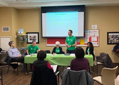 Board member Eugene talking with community members